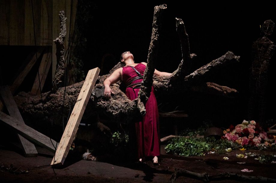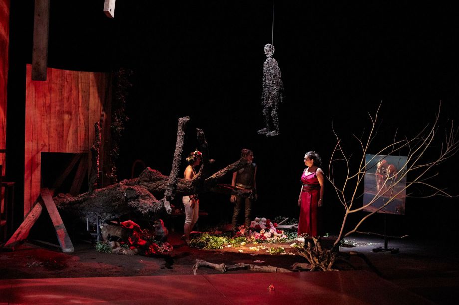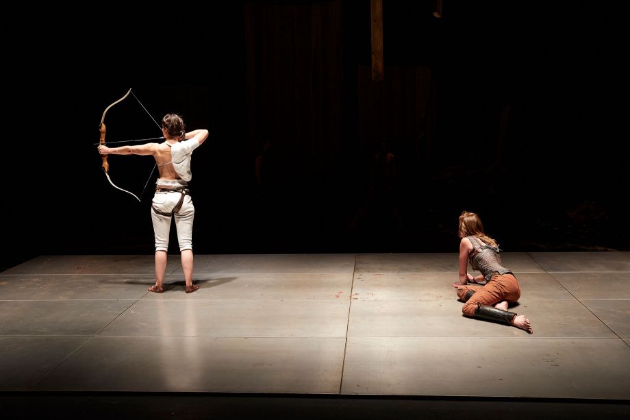 Sur le plateau, Penthésilée l'Amazone apparaît. Elle raconte l'histoire. Celle qui a eu lieu, il y a longtemps, celle du siège de Troie. Elle y a combattu Achille qui a perdu la vie par amour pour elle, alors que la guerre ne devait engendrer que des captifs et des naissances. Penthésilée et Achille sont morts maintenant. C'est dans ce lieu, près des corps des amants, que celle qui revient d'après la catastrophe, raconte. Elle parle de l'histoire de son peuple depuis ses origines, de la loi des Amazones, des ultimes paroles d'Otréré, sa mère, de sa rencontre avec Achille, rencontre solaire sur le champ de bataille, et du bouleversement radical qui la saisit et l'entraîne loin de son devoir. Penthésilée se remémore « l'onde de choc », les corps engagés dans une guerre amoureuse, la terre brûlée, vibrante, zone de stridences et de crissements. Jusqu'au bout, par la force de la parole, elle rejouera la mise en scène de cet amour à mort, sous le regard de sa confidente et amie de toujours, Prothoé. La langue de Heinrich von Kleist, dans la traduction de Julien Gracq, fait revivre le chant désespéré de cette femme qui se déchire entre la culture qui l'a façonnée et la brûlure incandescente du premier homme.