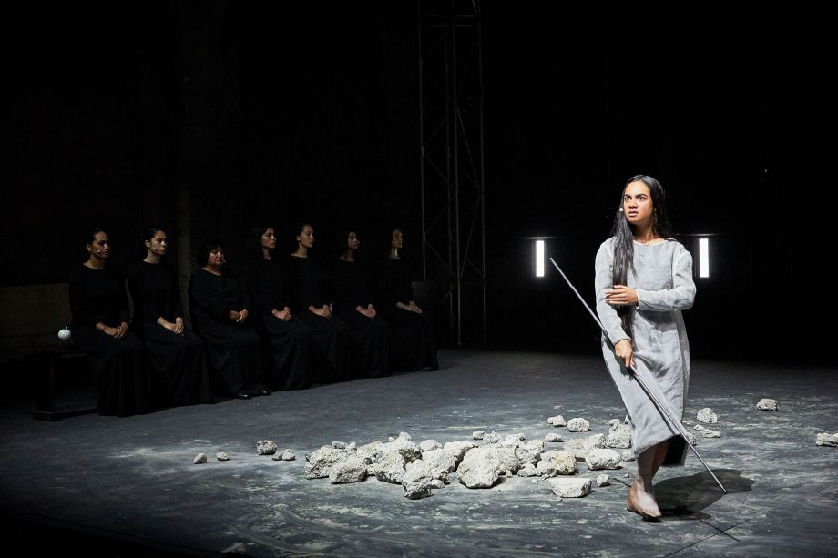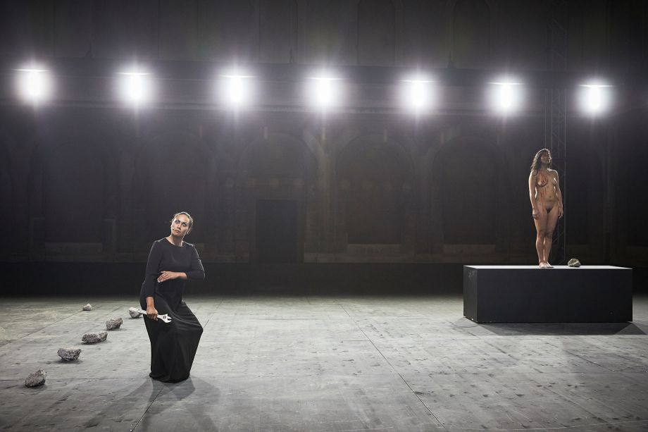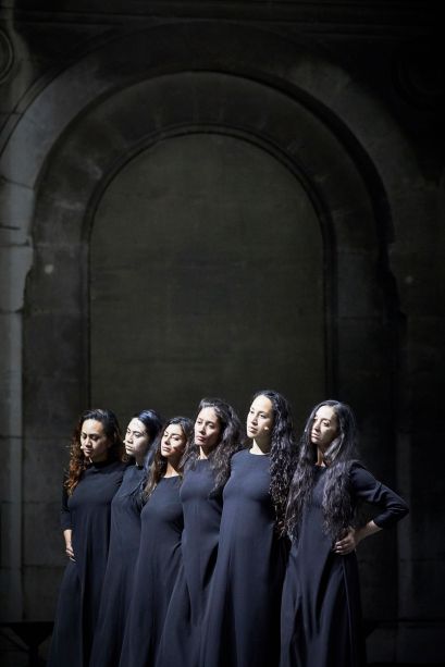 En maori, « Hine-Nui-Te-Po » définit la femme qui prend soin de tous les humains après la mort. Plus loin, mais aussi féminine et puissante, Justicia, déesse romaine, habite nos édifices et impose une justice de manière détachée. Entre ces deux références, ces deux visions du monde, Lemi Ponifasio parle du sort des femmes qui disparaissent de la vie sociale, sans explication... Comment rééquilibrer les choses ? Avec sa nouvelle pièce, Standing In Time, le chorégraphe veut questionner le concept de justice et de dignité humaine. Par l'évocation de l'histoire de la création et de la destruction, il embrasse une réflexion sur le voyage de l'homme et de la vie sur terre. Face à nous, il pose un plateau. Au sein de ce cadre, il convoque neuf femmes vêtues de noir. De cet ensemble quasi monacal, il pense le temps et l'espace, installe les blancs et les noirs pour qu'une relation au contemplatif advienne. La sensation prévaut sur le sens, et c'est par elle que l'homme pourra comprendre ce qui l'entoure et ce qui le constitue intrinsèquement. Si Lemi Ponifasio s'est inspiré des écrits de la poétesse syrienne Rasha Abbas, auxquels répondent au plateau les chants de lamentation écrits par ces femmes issues de communautés maories isolées, c'est plutôt pour offrir au public un accès à la pureté de la langue et à l'émotion portée par les sons qu'un accès aux significations incomplètes dictées par l'arbitraire des mots. Pas de surtitres ici mais la possibilité d'une lecture poétique voire cosmogonique du monde.