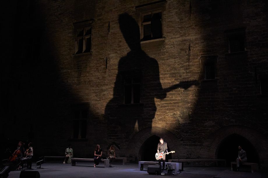 Quand le sentiment croise l'inflexion des voix. Quand la mélancolie et le désir résonnent plus que jamais... Ici-bas propose aux mélodies de Gabriel Fauré d'être portées par des artistes d'aujourd'hui et d'être entendues hors d'une tradition lyrique. En confiant ces mélodies souvent méconnues à des chanteuses et chanteurs venus d'horizons divers, du jazz à la pop, le guitariste compositeur Olivier Mellano, les musiciens Simon Dalmais, Anne Gouverneur et Maëva Le Berre, aux côtés de la conceptrice de spectacles Sonia Bester, offrent un monde nouveau à ces subtiles compositions du XIXe siècle. Le spectacle Ici-bas est à la fois une soirée unique avec quinze chanteurs en clôture du Festival d'Avignon et un projet ambitieux né de l'envie de rompre avec une puissance lyrique qui souvent met à mal la diction et l'écoute de ce répertoire. Promise au songe, cette soirée en suspens allie la parole à la musique, la poésie à la nuit. Entre deux arches sonores de guitare, chaque interprète viendra partager de son timbre de voix ces « chansons » ancêtres des nôtres, et qui seront pour beaucoup, grâce à ces artistes, une véritable révélation.