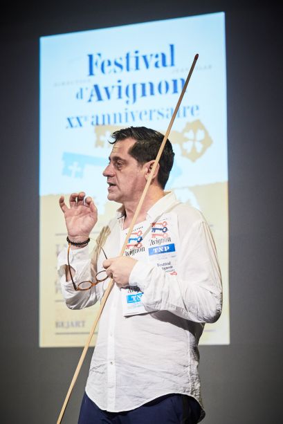En 2013, Olivier Py devient le premier artiste à diriger le Festival d'Avignon depuis Jean Vilar. Metteur en scène de théâtre et d'opéra, réalisateur mais aussi comédien et poète, Olivier Py ancre son oeuvre au coeur des préoccupations de ses contemporains afin de pouvoir ouvrir avec eux un dialogue, poétique et politique, sur la vie de tous dans la Cité. Le Théâtre est sa culture et son instrument : avec lui, le verbe se transforme en action sans perdre de vue que ce geste – un poème – pourrait un jour être à l'origine de nouvelles formes démocratiques.